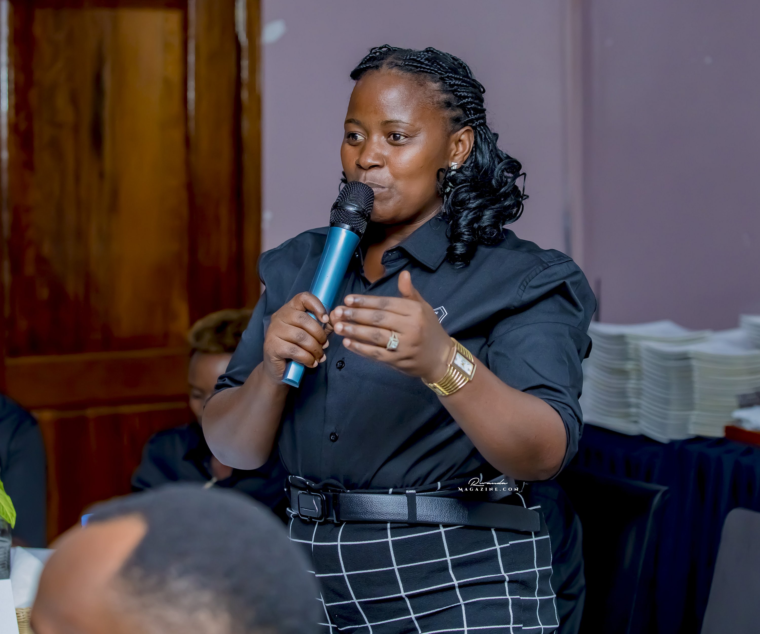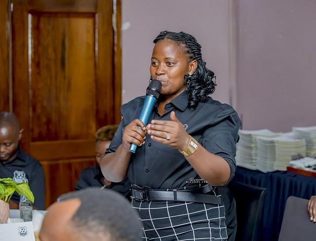 Mbabazi Olga, umunyamabanga wa Zone 1 atanga ibitekerezo kuri gahunda bari bamaze kugezweho