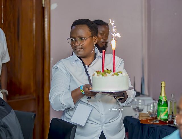 Basoje iyi nama basabana ndetse barasangira, banaboneraho gukorera ’Surprise’ Nirere Anne Marie, ushinzwe umutungo mu bafana ba APR FC ku rwego rw’Umujyi wa Kigali wari wagize isabukuru y’amavuko.