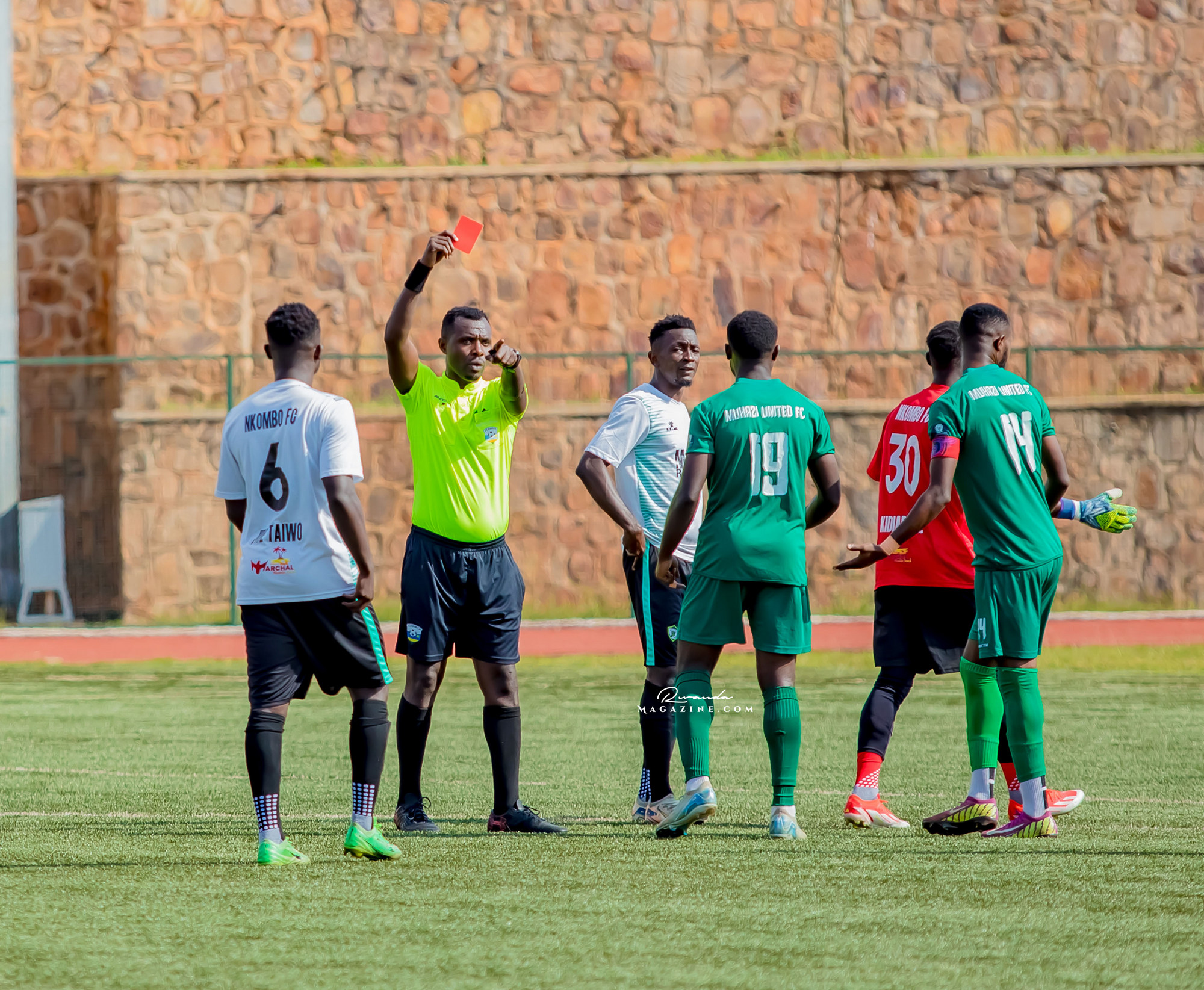 Ku isegonda rya 11, Nkombo FC yabonye ikarita y’umutuku yahawe umunyezamu wabo Tuyishime Iddy uzwi ku izina rya Kidiaba kubwo kugonga umukinnyi wa Muhazi United akamukubita ku mutwe yanarenze urubuga rw’amahina ari nabyo byatumye ikinisha abakinnyi 10 umukino wose.